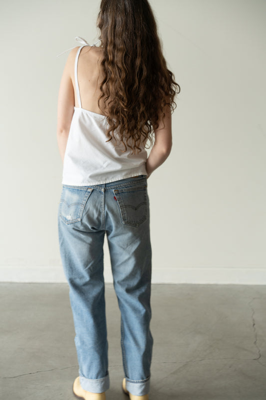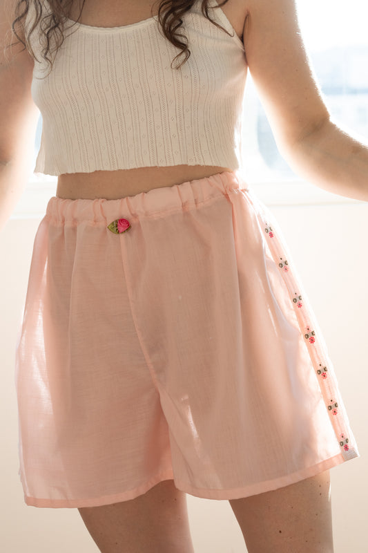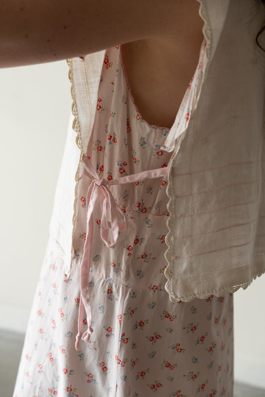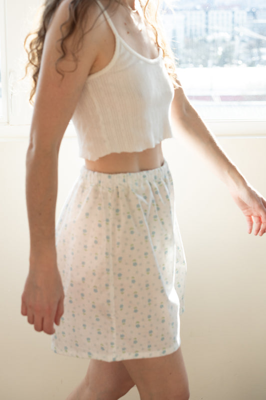 Each piece begins with Meghan sourcing vintage textiles and garments, which are then thoughtfully reworked and sewn into something new by Skyelar. Pieces with history are given another life through careful hands and thoughtful making.