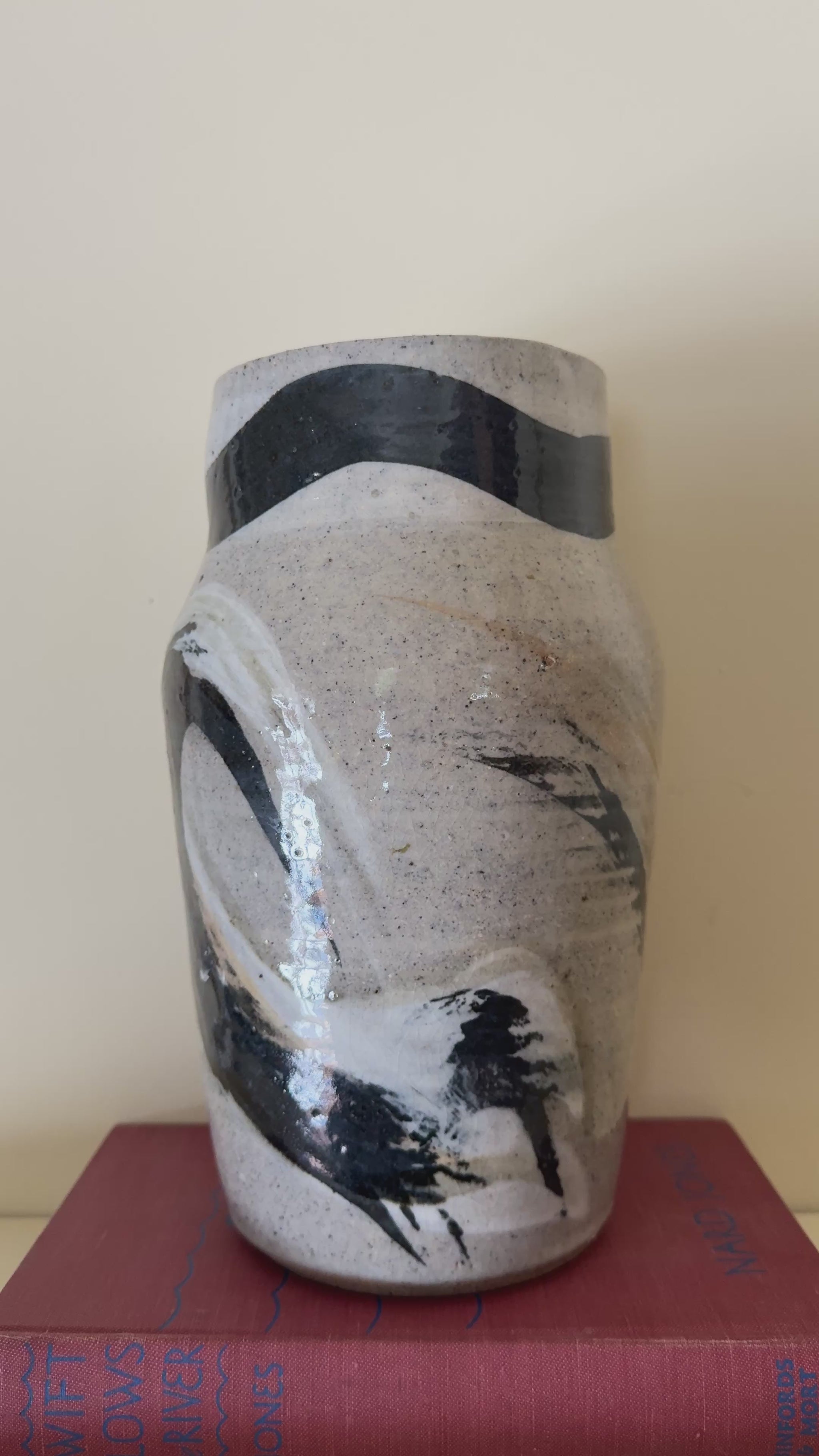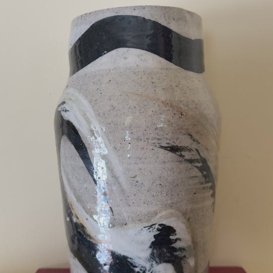 Hand-thrown ceramic vase with a beautiful neutral stoneware base and bold black brushwork throughout. Sculptural shape with great weight and presence — works beautifully as a standalone piece or with dried stems.