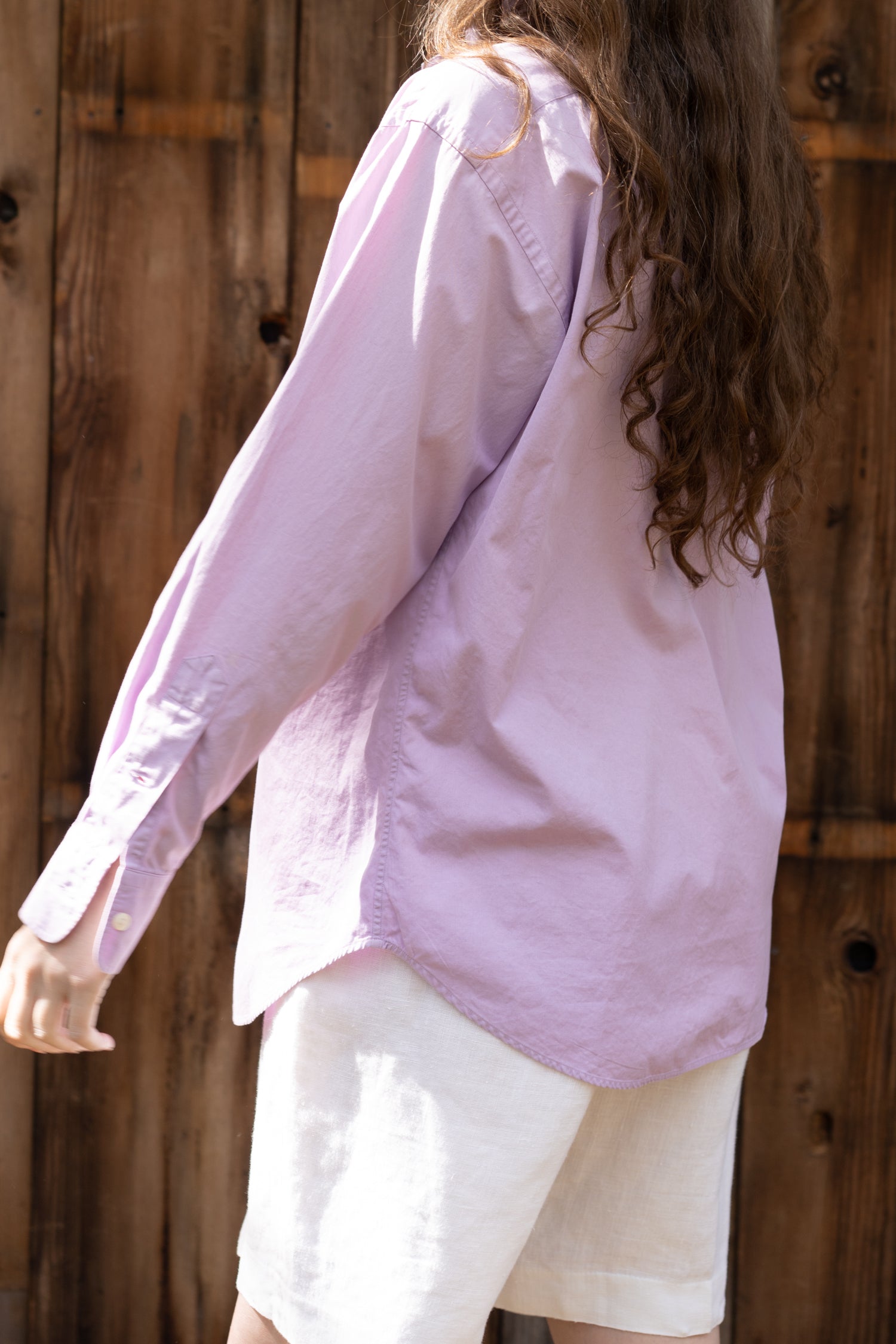 Vintage Ralph Lauren button down in a soft, light lavender cotton. Cut with a relaxed, easy drape that works just as well worn loose as it does tucked or tied.