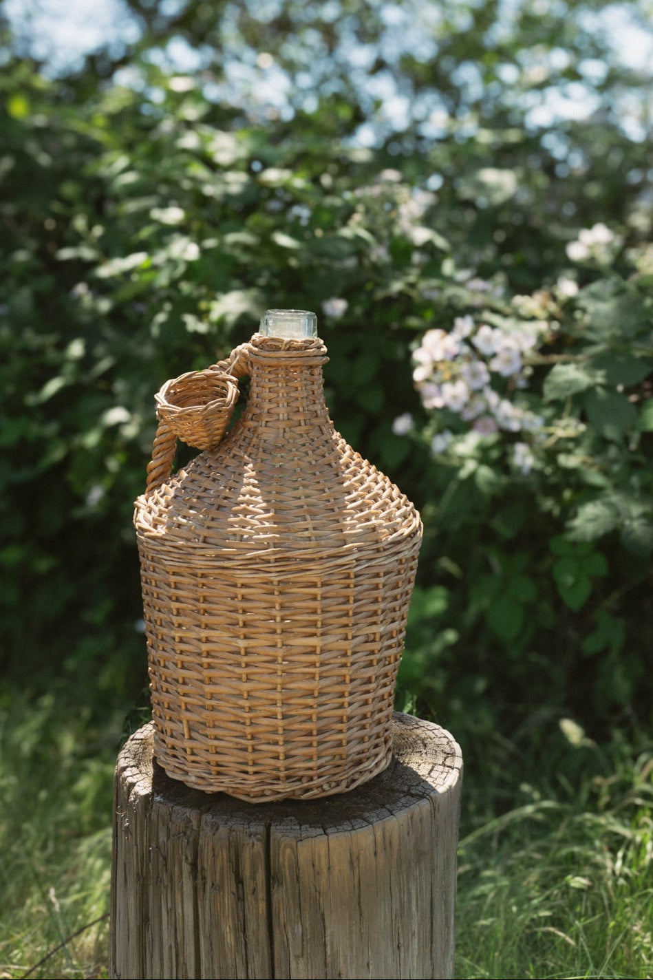 Antique wicker jug — charming and timeless, perfect for its original use or as a unique decorative touch in your home.